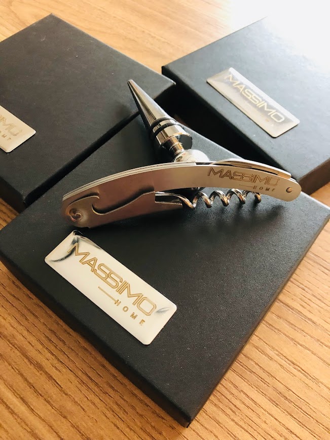 Descrição: Kit vinho 2 peças em estojo com tampa, contém saca-rolhas metálico com lâmina de corte e abridor de garrafa e tampa de bico. Área interna do estojo com berço de espuma. Acompanha plaquinha metálica para personalização. PERSONALIZADO