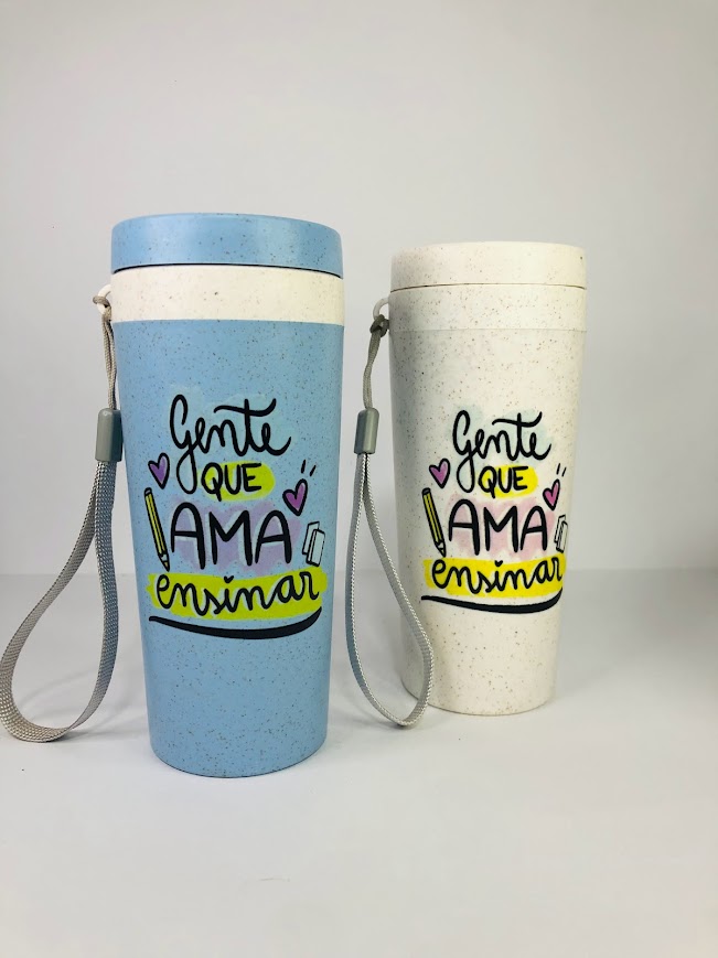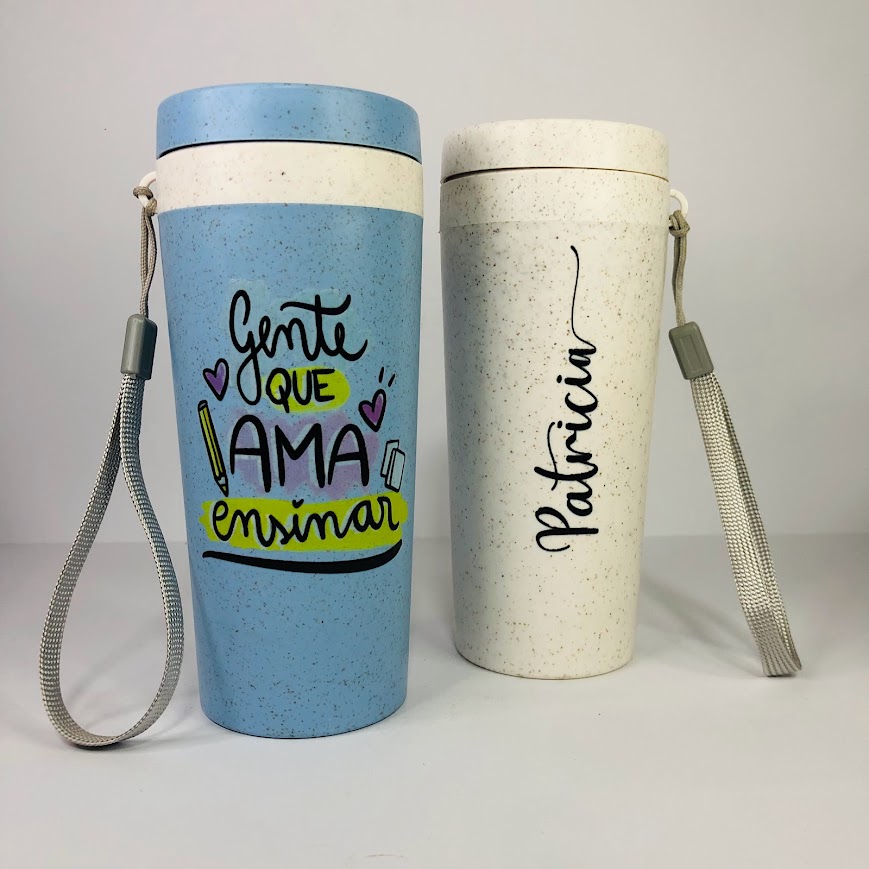 Copo fibra de bambu 350ml com parede dupla e alça. Copo produzido em Polipropileno livre de BPA, possui uma tampa de vedação rosqueável e alça de nylon (removível) para transporte. Conserva a temperatura interna durante um período de 1 à 2 horas, mas não dispõe de isolamento térmico. O copo pode ser levado a lava-louças, geladeiras e micro-ondas.PERSONALIZADO